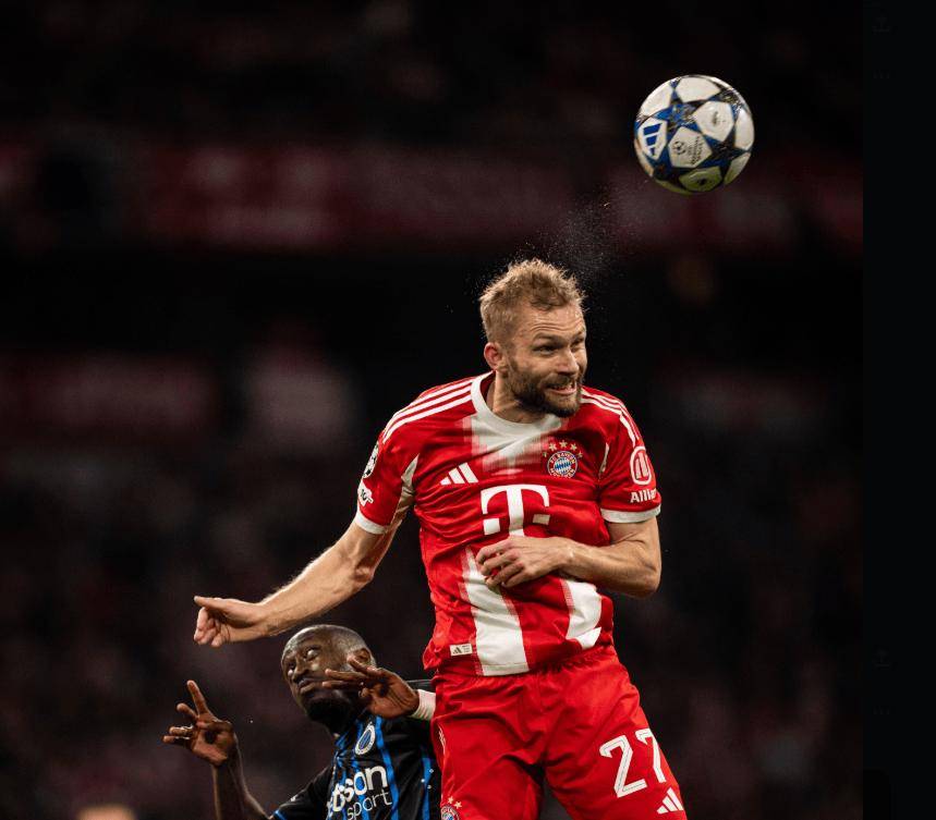 看到年轻球员如此出彩,拜仁的老将也不甘示弱。第14分钟,莱默尔在停区内做出精彩停球后横扫门前,凯恩在后点轻松推射破门,继续延续着他在本赛季的高效进攻。拜仁2-0领先,场面一边倒,布鲁日几乎没有反击机会,只能寄希望于尽力防守。第34分钟,莱默尔再次送出精准助攻,迪亚斯在停区内做了一个巧妙的节奏变化后劲射破门,将比分扩大至3-0。上半场结束,拜仁已经占据了压倒性的优势。